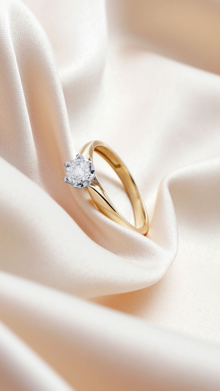 Classic Gold Toned Solitaire Ring Set - Cubic Zirconia Engagement & Wedding Style Stainless Steel