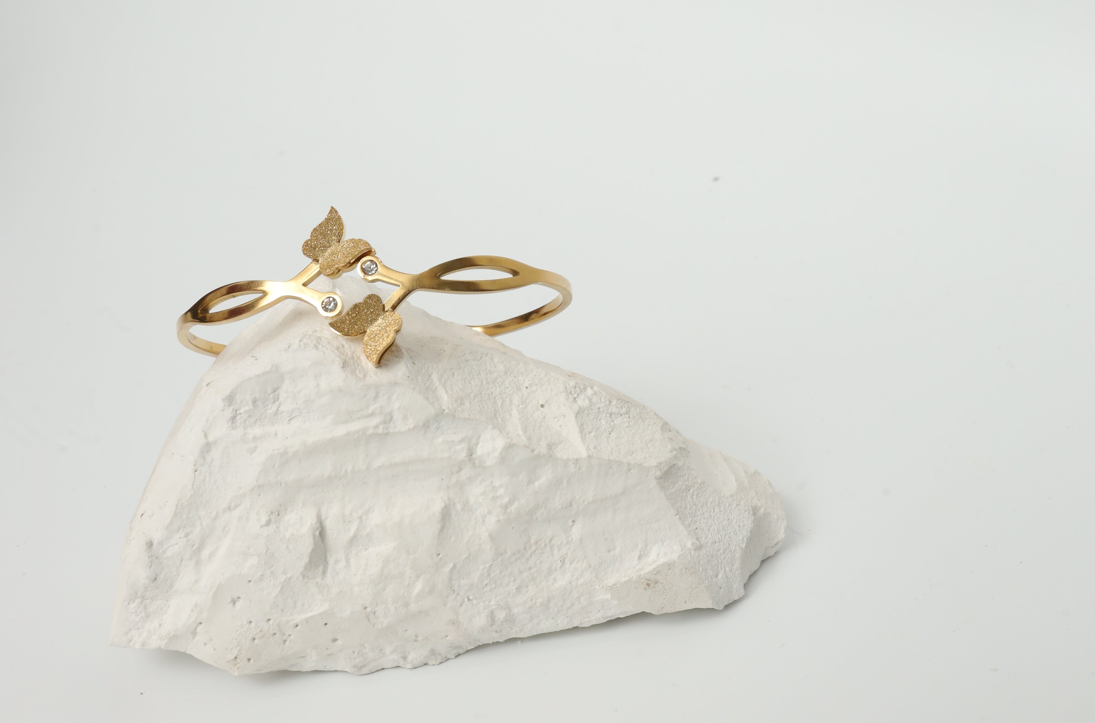 Chic Gold Toned Double Butterfly Ring - Textured Minimalist Nature Jewelry Stainless Steel
