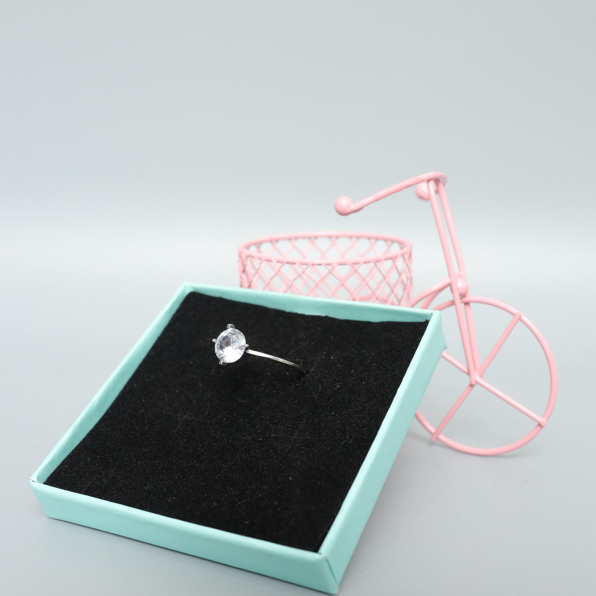 Classic Sterling Silver Solitaire Ring - Round Cut Cubic Zirconia Engagement Style Stainless Steel