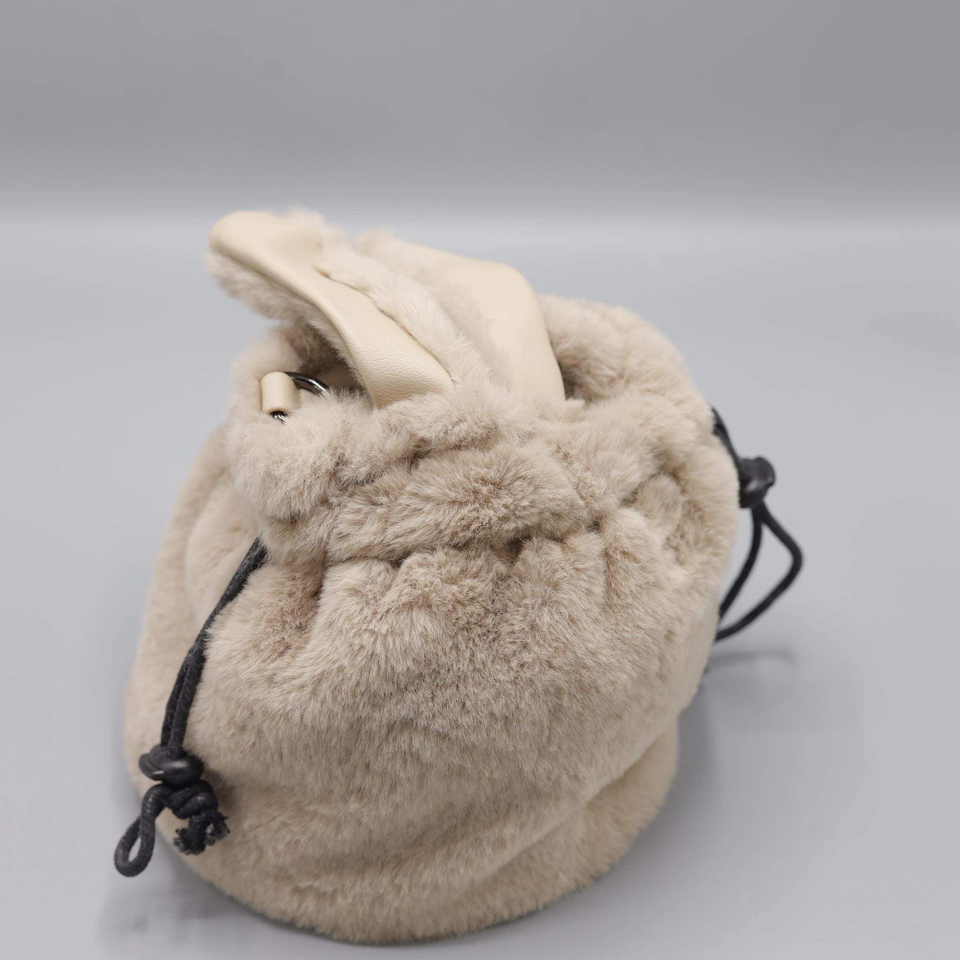 This adorable and playful faux fur bag is a cozy accessory for any outfit. The fluffy plush texture provides a delightful touch, and the cute bunny ears add a whimsical touch of personality