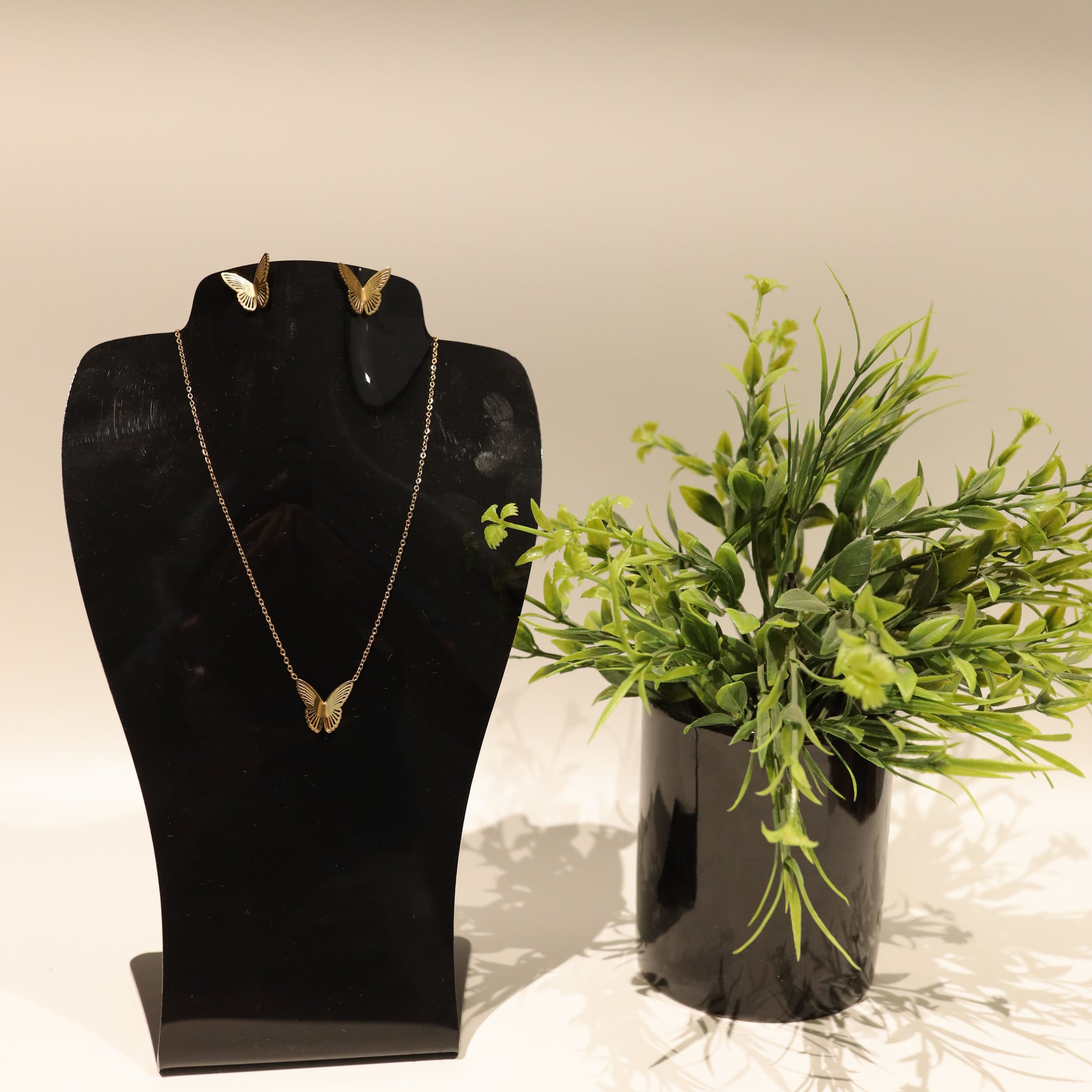 Gold Plated Butterfly Necklace & Earring Set Stainless Steel
