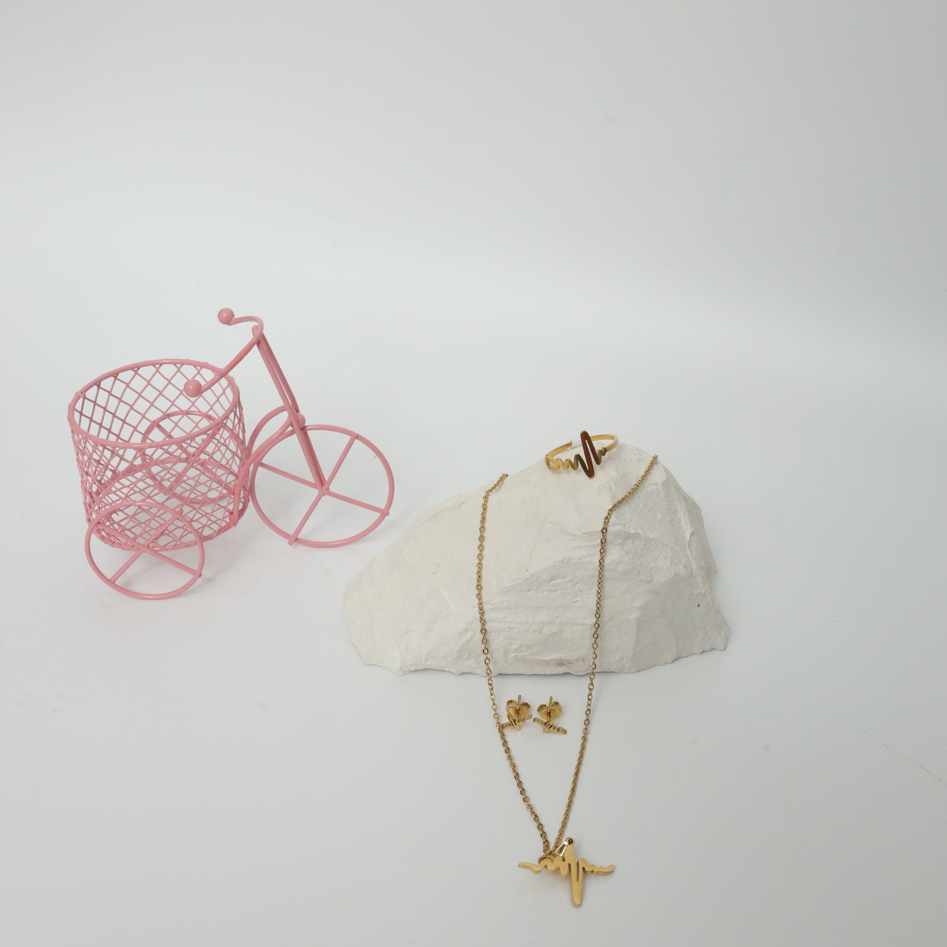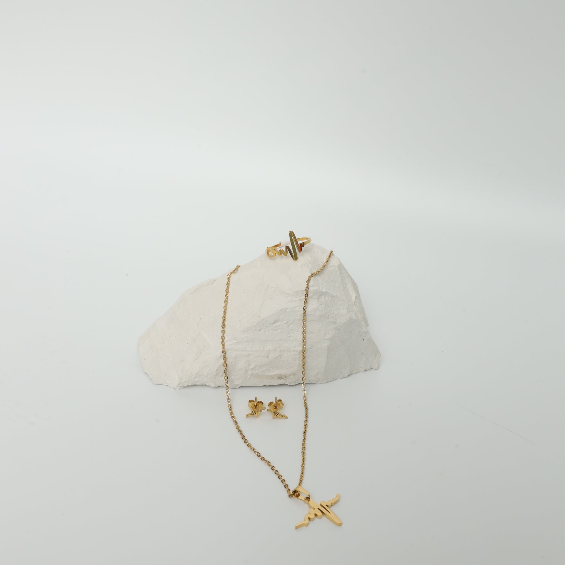 Gold Plated Heartbeat Jewelry Set Stainless Steel